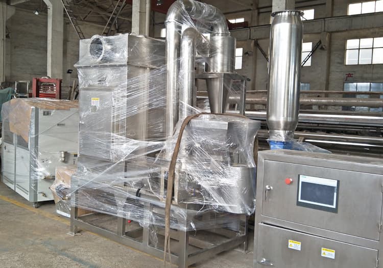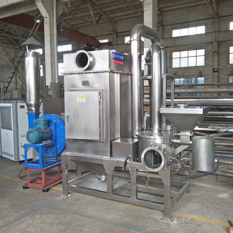 但是膠類產(chǎn)品如明膠、卡拉膠、阿拉伯膠等屬難粉碎物料,它們具有韌性,柔軟,粘性等特點(diǎn)。過(guò)去的粉碎生產(chǎn)中,大多采用冷凍粉碎機(jī)粉碎。液氮冷凍粉碎生產(chǎn)過(guò)程損耗大量液氮,成本偏高。為解決大部分粘性含糖分的特殊性物料的粉碎問(wèn)題,江陰市盛田機(jī)械制造有限公司特別研發(fā)出了低溫粉碎機(jī),溫度可低于零下10度,物料在低溫狀態(tài)下粉碎效果好,產(chǎn)量高。