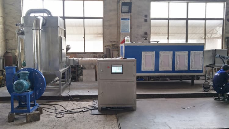 江陰盛田機(jī)械工程部研發(fā)人員針對原料的特殊性,多次試料并在兩個(gè)月內(nèi)研發(fā)出D級凈化低溫超微粉碎機(jī)。該設(shè)備由工業(yè)冷風(fēng)機(jī)、進(jìn)料倉、粉碎機(jī)、分級機(jī)、旋風(fēng)下料裝置、排風(fēng)過濾裝置、引風(fēng)機(jī)、D級凈化系統(tǒng)及電控柜組成。普通超微粉碎機(jī)在運(yùn)轉(zhuǎn)過程會產(chǎn)生相當(dāng)高的熱量,為了降低機(jī)腔及管道內(nèi)的溫度,采用了大功率冷風(fēng)機(jī),物料在設(shè)備內(nèi)部粉碎時(shí)溫度控制范圍:10~25℃。進(jìn)風(fēng)口采用D級凈化,整個(gè)生產(chǎn)過程在D級潔凈空氣下進(jìn)行。原料易粘附,工程部技術(shù)人員對粉碎機(jī)腔進(jìn)行了改造,使設(shè)備內(nèi)部無原料殘留物。加裝西門子變頻器控制轉(zhuǎn)速可改變出料細(xì)度,粉碎細(xì)度控制在100目。設(shè)備采用西門子PLC加觸摸屏自動(dòng)化控制,控制系統(tǒng)器件采用西門子品牌(包含觸摸屏、PLC及擴(kuò)展模塊、變頻器),其余配電器件采用施耐德品牌。